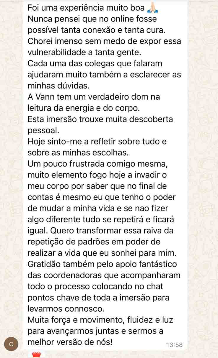 Mais do que autoconhecimento, essa vivência é uma porta de entrada para uma nova profissão com alma, propósito e transformação real.